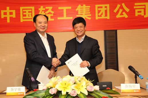 俞海星總經(jīng)理與中輕對(duì)外公司總經(jīng)理王向陽(yáng)簽訂責(zé)任書